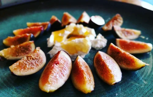 A bee, a flower, and a bridge on Granville Island, Vancouver